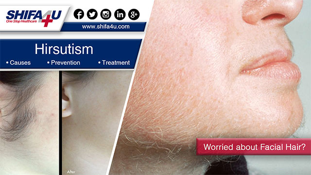 Hirsutism is a condition of abnormal hair growth in women and is characterized by thick and coarse, hair in areas where women usually do not have any hair such as face, chest, abdomen, and back. Patients may feel self-conscious about having unwanted body hair and this can be emotionally very distressing.