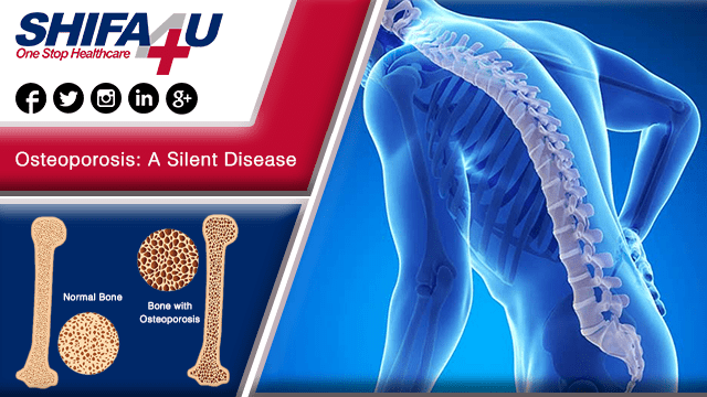 Osteoporosis is a disease characterized by low bone mass and deterioration of bone tissue, leading to bone fragility. It is called a ‘silent disease’ because it progresses without symptoms or pain until a fracture occurs, usually in the hip, spine, wrist or shoulder. It can lead to pain, disability and, in some cases, even death.