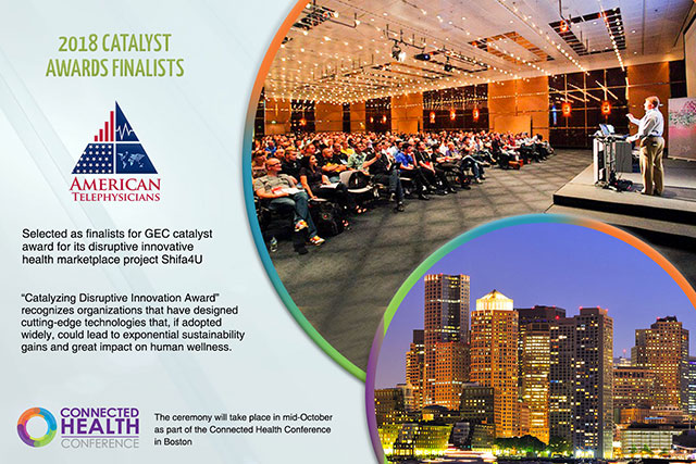 American TelePhysicians was selected as a Finalist of the GEC (Green Electronics Council) 2018 Catalyst Awards for their SHIFA4U project and will be formally recognized as a 2018 GEC Catalyst Award Finalist at the Connected Health Conference taking place in Boston this October 17-19, 2018.