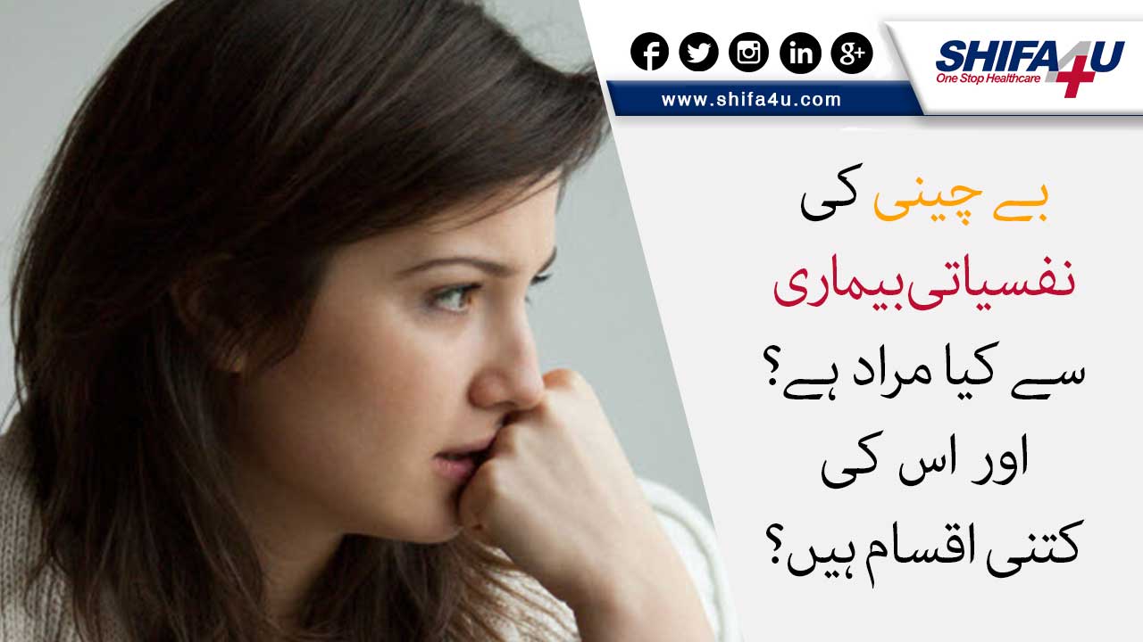 مستقل طور پر ڈر اور پریشانی کے شکار لوگوں کو اپنے شکنجے میں بآسانی پھنسانے والی یہ بیماری خاصی خطرناک ہے۔ اس نفسیاتی بیماری کی 3 اقسام ہیں جن میں پینک ڈس آرڈر، جینرلائزڈ انزائیٹی ڈس آرڈر اور فوبیازفوبیاز شامل ہیں۔ کبھی کبھار بے تابی اور بے چینی کا شکار ہونا تو ہر انسان کی زندگی کا حصہ ہے لیکن اگر یہ علامات 6 ماہ یا ذیادہ عرصے تک موجود رہیں تو اسے انزائیٹی ڈس آرڈر بیچینی کہیں گے۔ روزمرہ کے تمام کام جیسا کہ سکول، دفتر اور گھریلو زندگی پر اس چیز کے منفی اثرات مرتب ہوتے ہیں۔